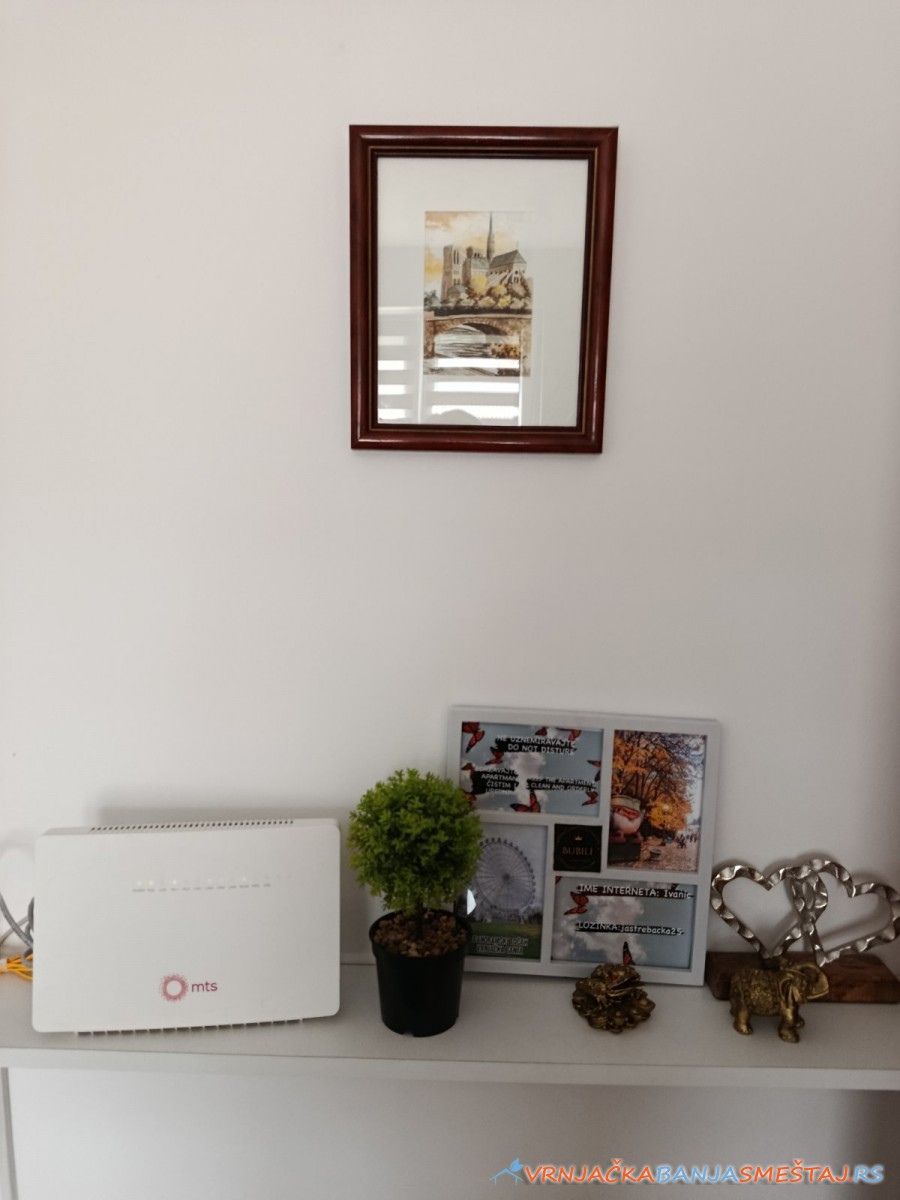 Za goste našeg apartmana obezbeđeni su posteljina, peškiri, tv u svakoj sobi, klima uređaj i Wi- fi internet. Za potrebe naših gostiju možemo obezbediti krevetac za bebe.